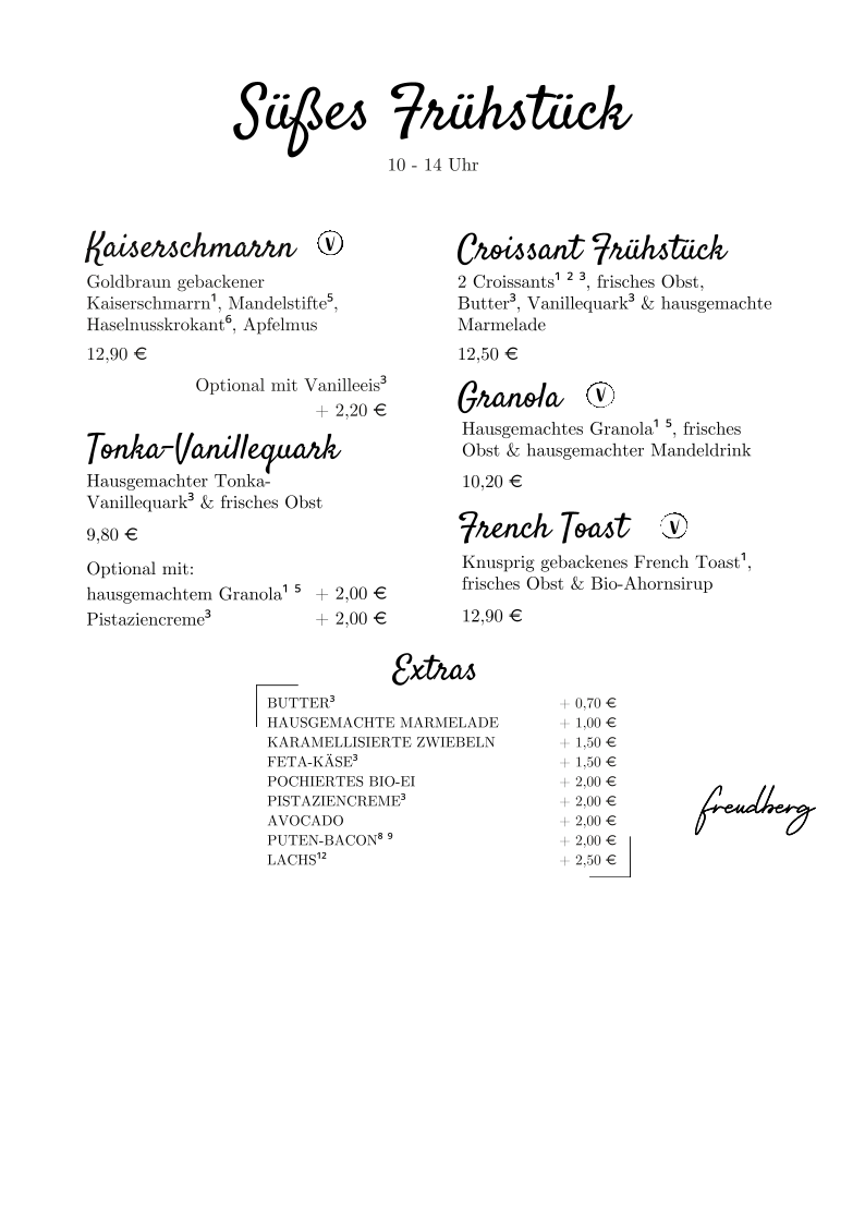 Café Freudberg Menu